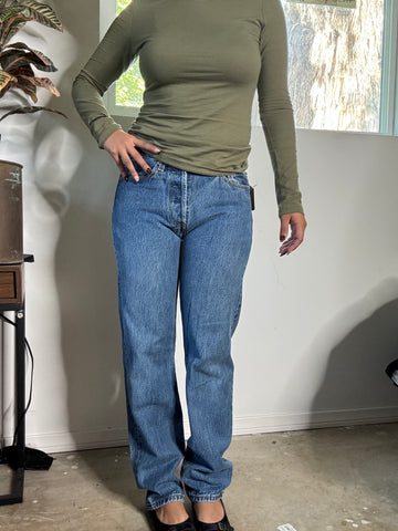 Early Y2K Levi’s 501 Jeans. Tag reads “W29 L32”. Made in the Dominican Republic. Mid Rise/ Slim Fit/ Straight Leg/ Button Closure. 100% cotton + non stretch vintage denim (size up if it’s your first time buying vintage). Best fit for a 27” waist depending on desired fit. No try ons! Please refer to measurements below. Please note pairs are atleast 20 years old and may have signs of wear.