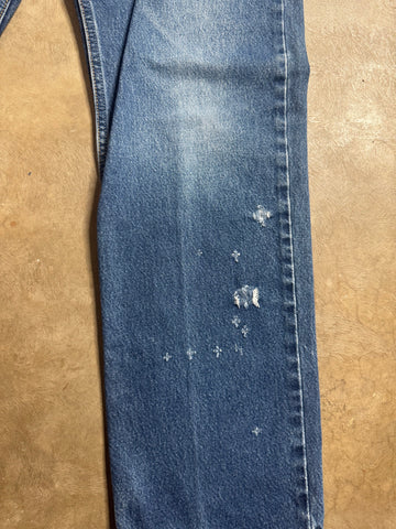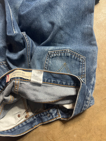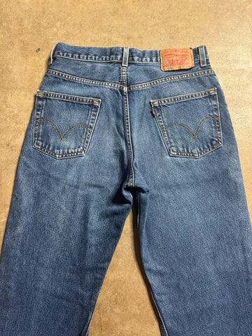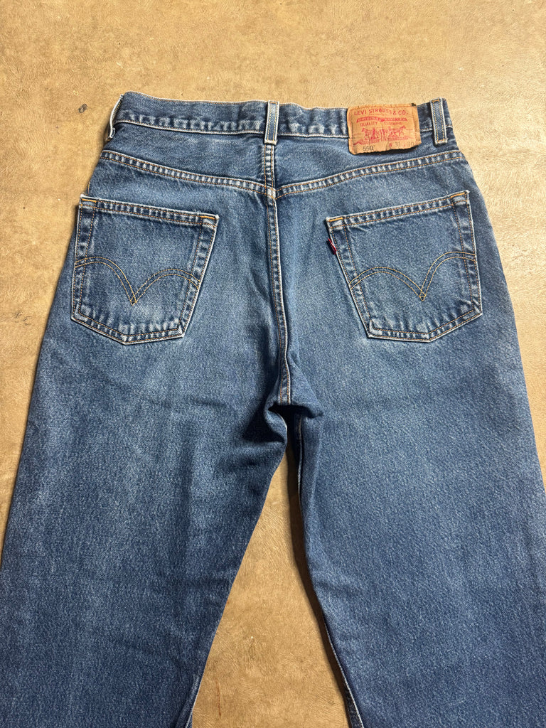 Early Y2K Levi’s 550 Jeans. Tag reads “W31 L30”. High Rise/ Relaxed Fit/ Tapered Leg/ Zipper Closure. 100% cotton + non stretch vintage denim (size up if it’s your first time buying vintage). Best fit for a 30” waist depending on desired fit. No try ons! Please refer to measurements below. Please note pairs are atleast 20 years old and may have signs of wear.