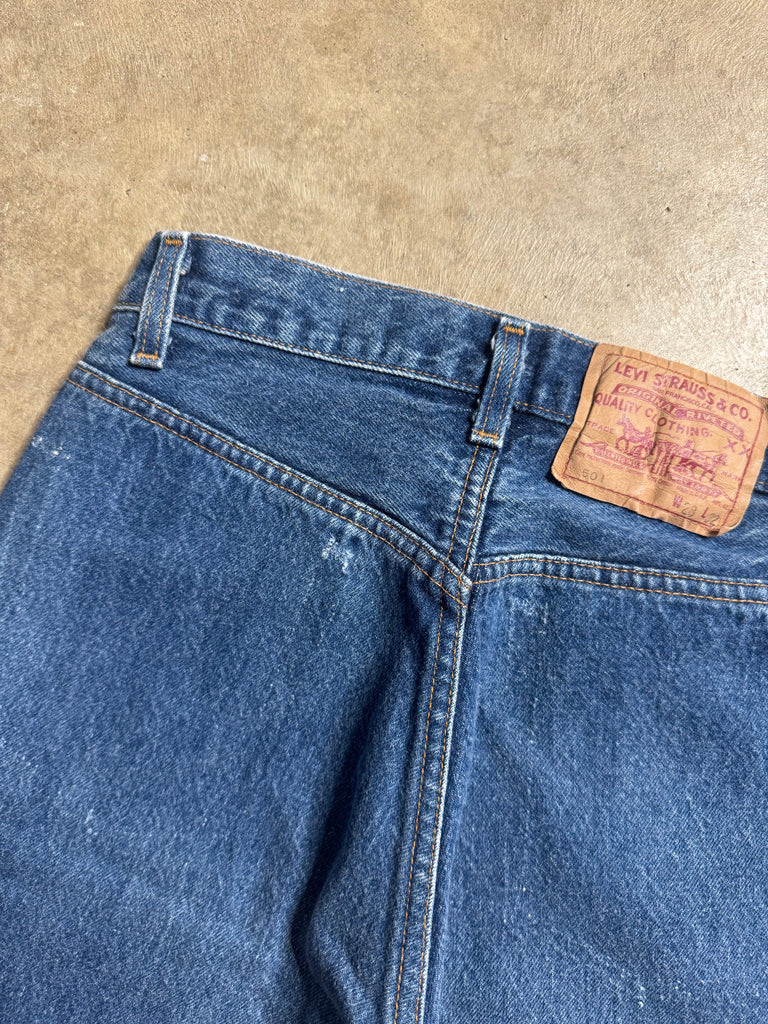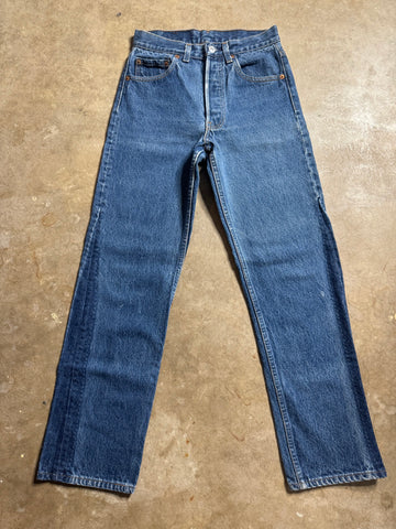 Vintage Levi’s 501 Jeans. Tag reads “W28 L32”. Made in USA. Mid Rise/ Slim Fit/ Straight Leg/ Button Closure. 100% cotton + non stretch vintage denim (size up if it’s your first time buying vintage). Best fit for a 25” waist depending on desired fit. No try ons! Please refer to measurements below. Please note pairs are atleast 20 years old and may have signs of wear.