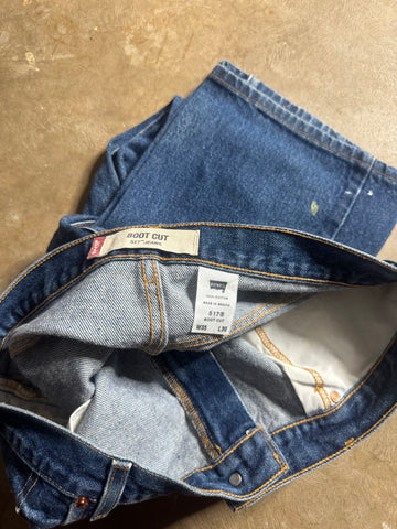 Vintage Levi’s 517 Jeans. Tag reads “W35 L30”. Made in Mexico. High Rise /Slim Fit/ Bootcut Leg/ Zipper Closure. 100% cotton + non stretch vintage denim (size up if it’s your first time buying vintage). Best fit for a 36” waist depending on desired fit. No try ons! Please refer to measurements below. Please note pairs are atleast 20 years old and may have signs of wear.