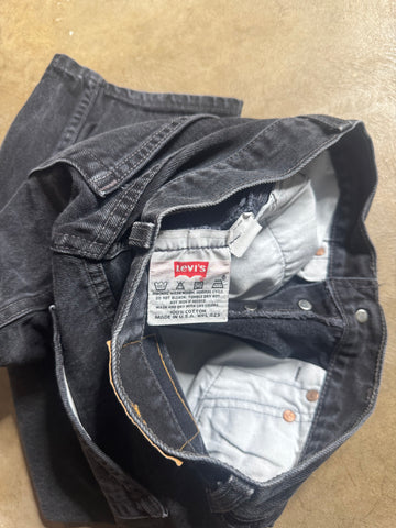 Vintage Levi’s 501 Jeans. Tag reads “W29 L32”. Made in USA. Mid Rise/ Slim Fit/ Straight Leg/ Button Closure. 100% cotton + non stretch vintage denim (size up if it’s your first time buying vintage). Best fit for a 26” waist depending on desired fit. No try ons! Please refer to measurements below. Please note pairs are atleast 20 years old and may have signs of wear.