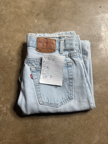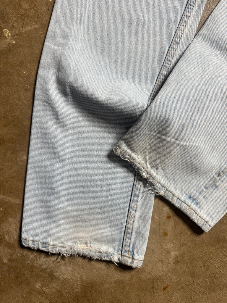 Vintage Levi’s 501 Jeans. Tag reads “W29 L32”. Made in USA. Mid Rise/ Slim Fit/ Straight Leg/ Button Closure. 100% cotton + non stretch vintage denim (size up if it’s your first time buying vintage). Best fit for a 27” waist depending on desired fit. No try ons! Please refer to measurements below. Please note pairs are atleast 20 years old and may have signs of wear.