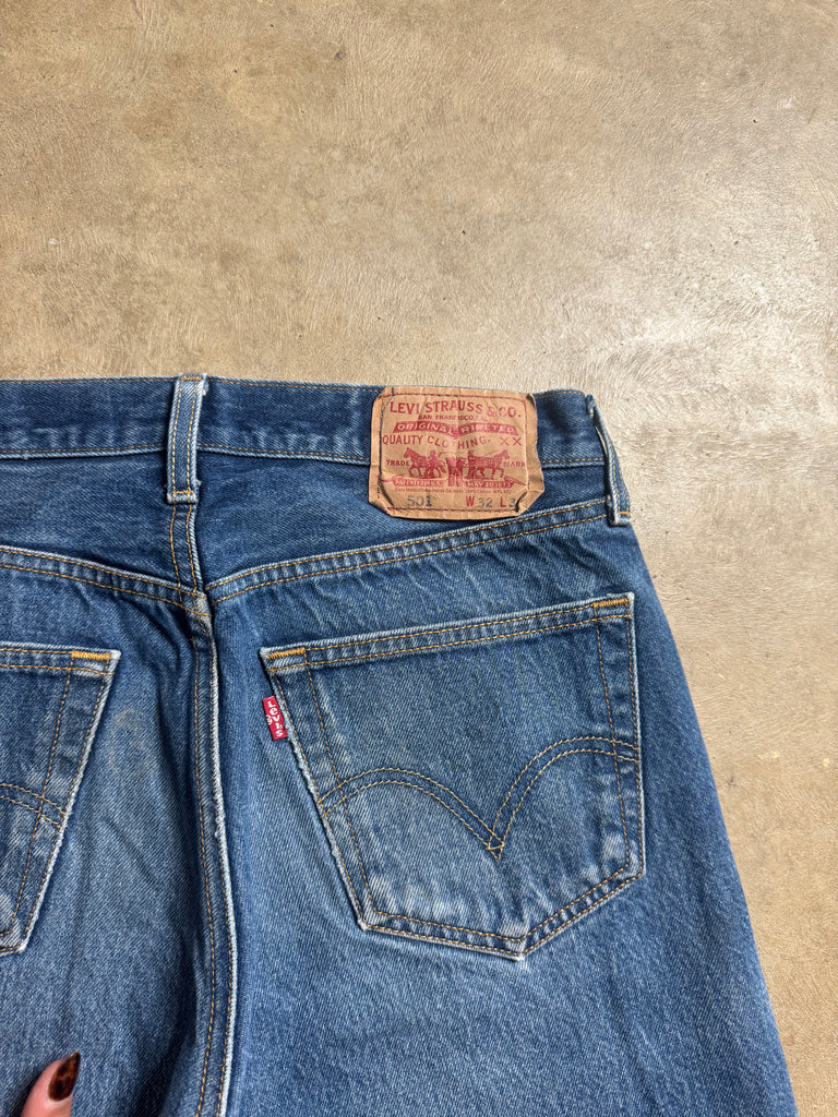 Early Y2K Levi’s 501 Jeans. Mid Rise/ Slim Fit/ Straight Leg/ Button Closure. 100% cotton + non stretch vintage denim (size up if it’s your first time buying vintage). Best fit for a 30” waist depending on desired fit. No try ons! Please refer to measurements below. Please note pairs are atleast 20 years old and may have signs of wear.