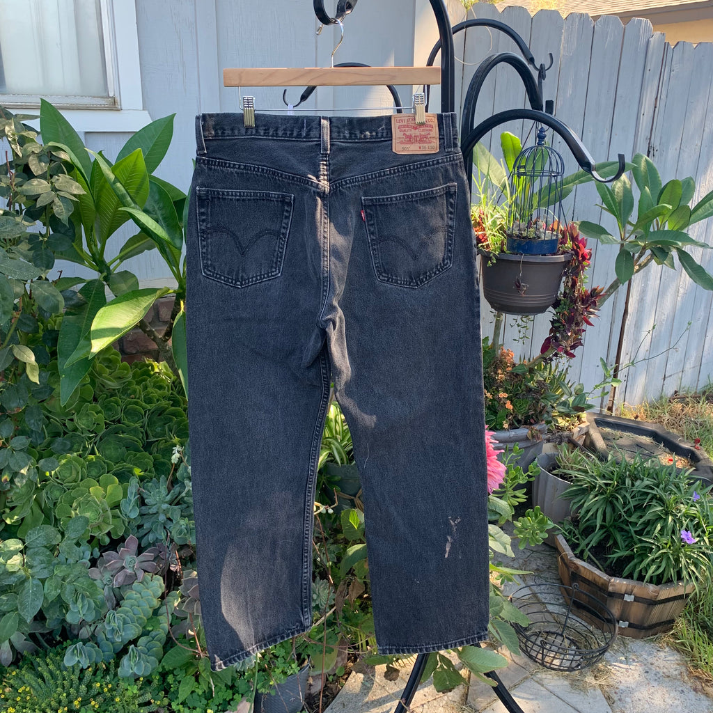 Vintage Y2K 505 Levi’s Jeans. Tag reads “W36 L30”. Mid Rise/ Straight Leg/ Slim Fit/ Zipper Closure. Small mark by the back leg! 100% cotton + non stretch vintage denim (size up if it’s your first time buying vintage). Best fit for a 32/33” waist depending on desired fit. No try ons! Please refer to measurements below. Please note pairs are atleast 20 years old and may have signs of wear.