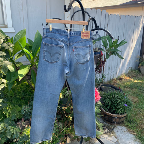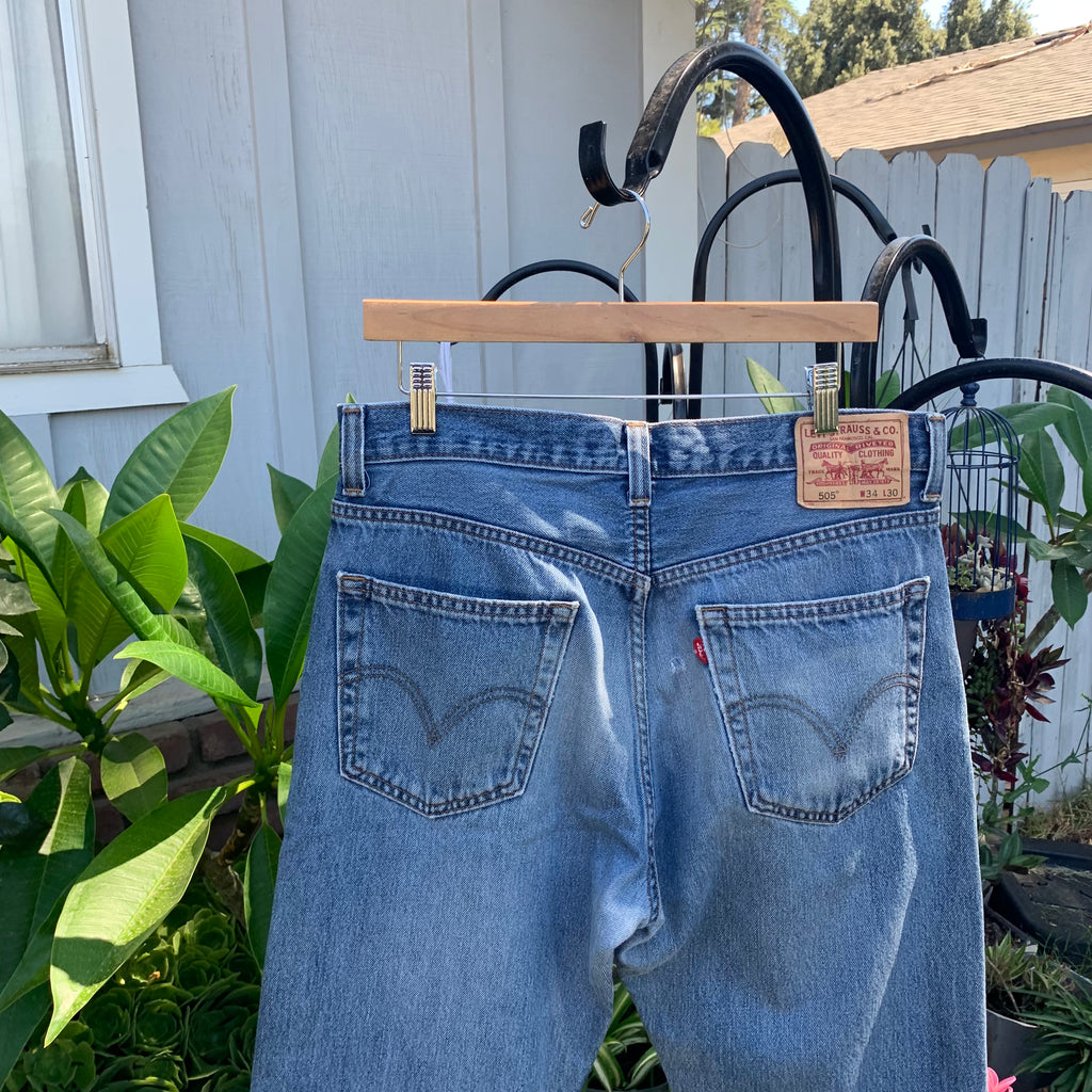 Y2K 505 Levi’s Jeans. Mid Rise/ Straight Leg/ Slim Fit/ Zipper Closure. 100% cotton + non stretch vintage denim (size up if it’s your first time buying vintage). Best fit for a 34/35” waist depending on desired fit. No try ons! Please refer to measurements below. Please note pairs are atleast 20 years old and may have signs of wear.